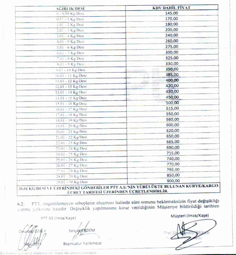 PTT İLE Üniversitemiz arasında imzalanan sözleşme kapsamında gönderi fiyat listesinden faydalanma